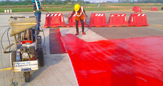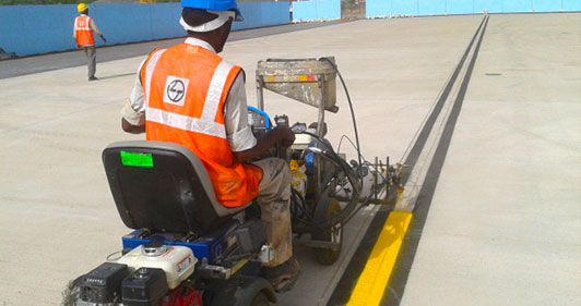 Nirmal Jove are specialist airport line marking and Highways kerb painting contractors that provide extensive line marking services to both civilian and Defence airfields .Comprehensive airport line marking set out and reinstatement of apron, taxiway, runway and helipad markings are our areas of expertise - we guarantee it.